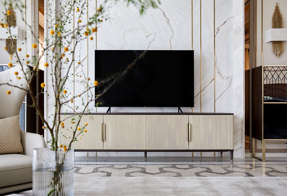 設計師鄭鴻以居者家族的凝聚力為起點,結合地域文化抒寫歸家的情懷。在輕奢美學與自然風物的融合滲透中,傳遞著充滿雅趣而恒久的審美,讓空間充滿安適舒愜的韻致。