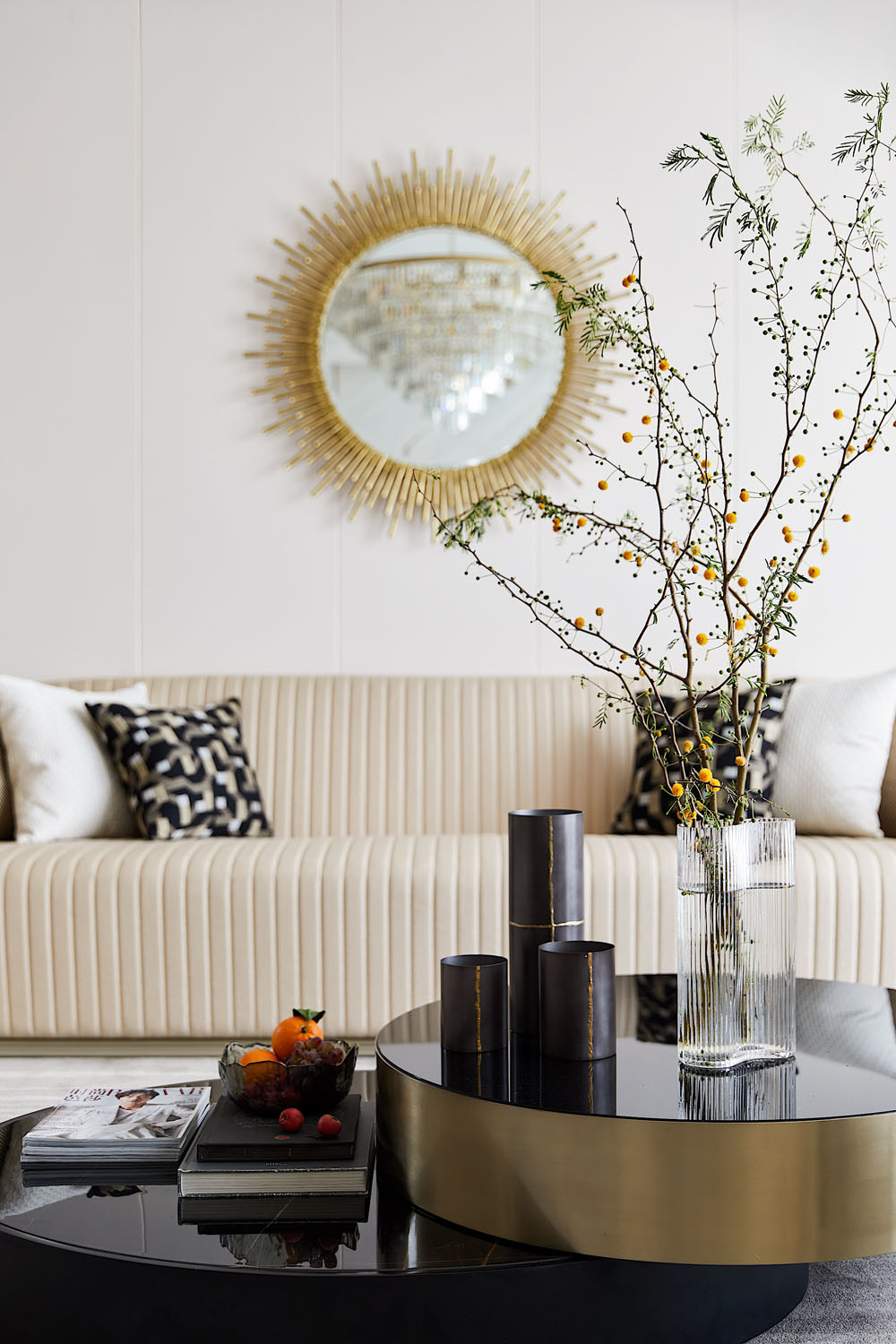 生活是精神意識的再現,所謂的奢華,是拋開表象之后所獲得精神上的愉悅與清寧。米色的溫柔與金屬的質感打造出素雅精致的藝境。清風徐來,透過紗簾悄悄融入親朋間的溫馨家常。想象需要被預留空間,讓每一天都充滿未知的驚喜。