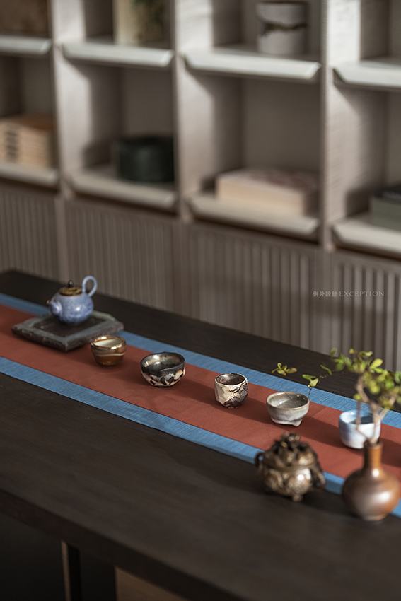 在一片低调不张扬的清悠中,忽然被渐入一抹澄澈的蓝,点亮心头的灵感之泉,一阵风拂过,茶烟袅袅升腾,灵谧而悠远,谈笑声渐息,似又听见书页翻动的沙沙声,时而眉头微蹙,时而恍然展颜,空间所给予的远不止于此,更是内心的旁骛尽散,通透诗意。