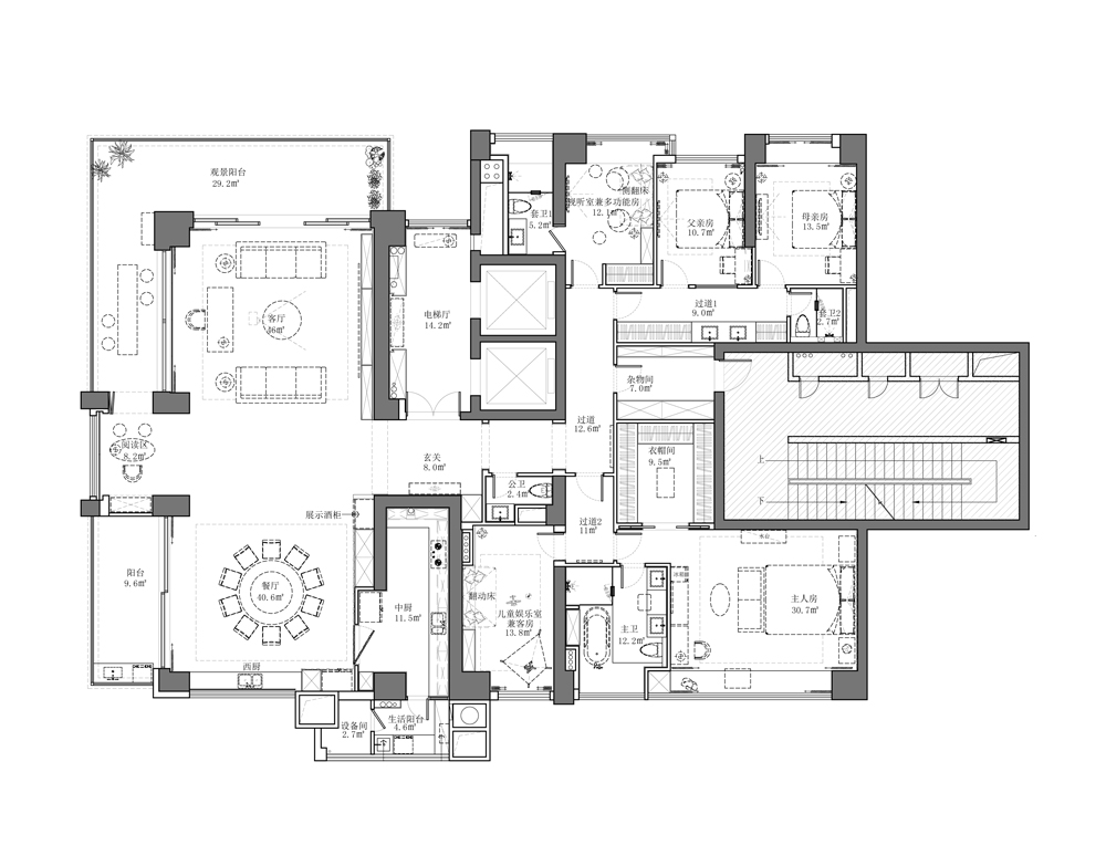 在深圳鴻榮源·壹方中心的私宅設計中,基于這個三代同堂家庭的生活方式與品位格調,他以現代新中式的靜雅風韻與閑逸情致,結合智能家居系統與品質工藝,實現定制化的生活場景,令居者感受到生活是指向幸福的體驗。