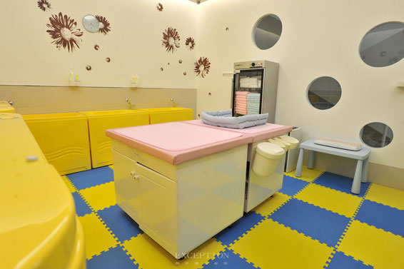 鲜艳的色彩对新生儿有一种强烈的吸引力,能够刺激新生儿对色彩的辨识能力,设计师选取柠檬黄和天空蓝作为婴儿游泳抚触室的主色调,贴近自然的颜色把空间装点得空间活泼清爽,圆润的家私边角处理贴心的避免了磕碰危险,保障新生儿安全。